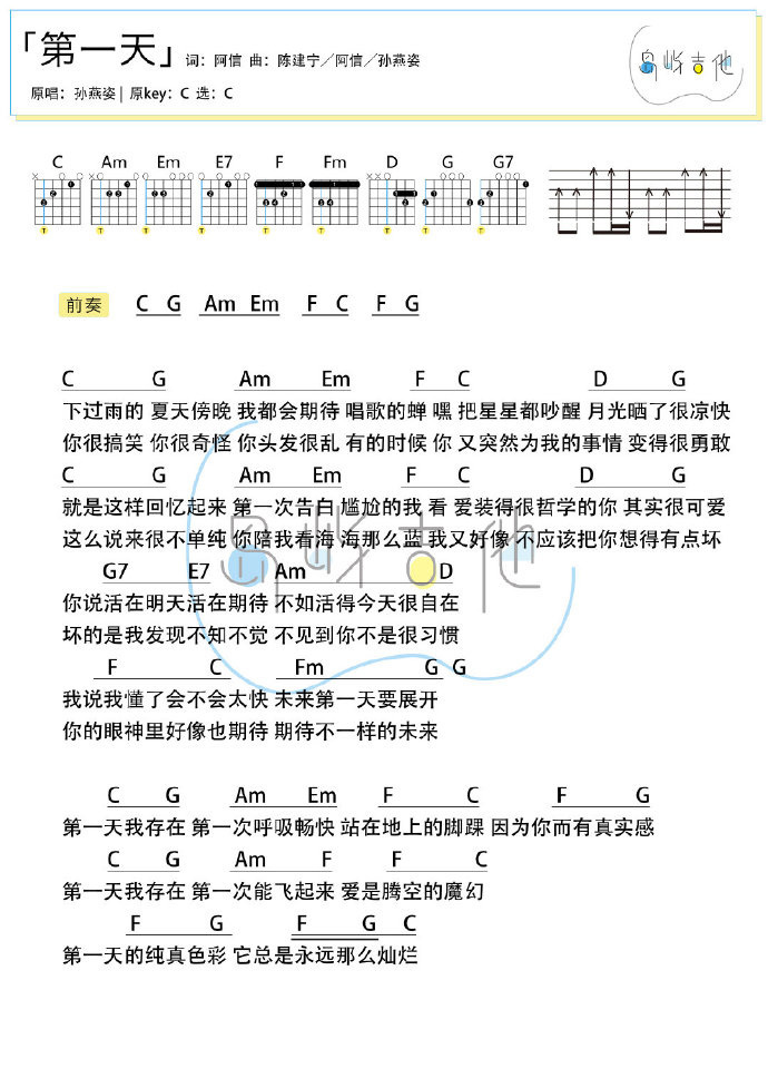 吉他孙燕姿《第一天》吉他谱_吉他弹唱谱_岛屿吉他编配