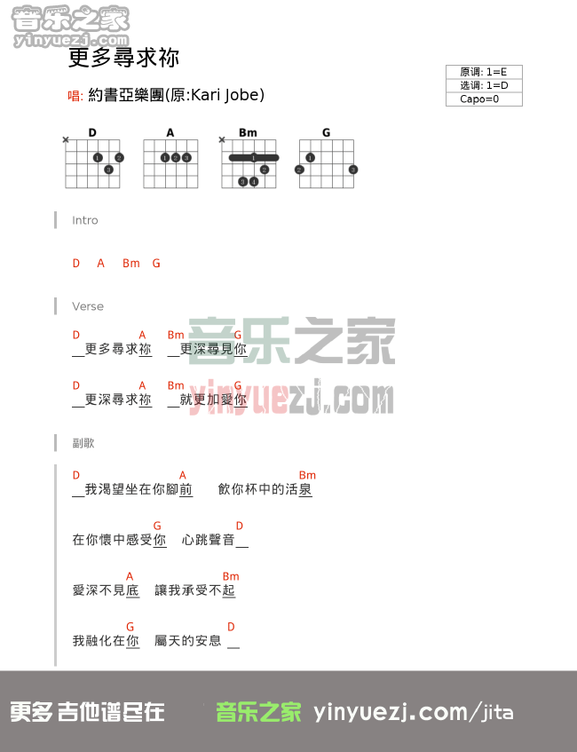 吉他 约书亚《更多寻求你》吉他谱_吉他弹唱谱_YYZJ编配