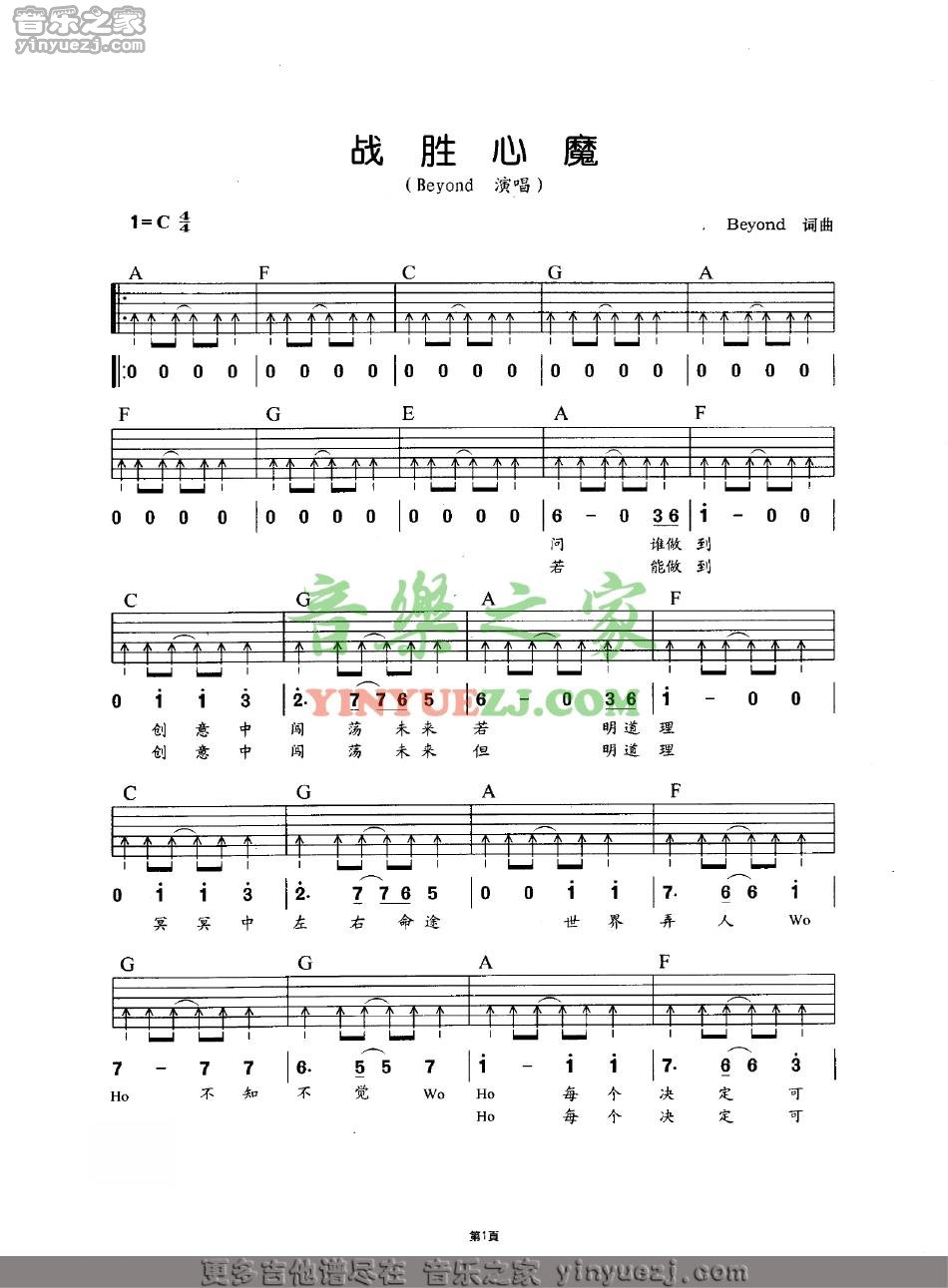 吉他Beyond《战胜心魔》吉他谱_吉他弹唱谱_YYZJ编配