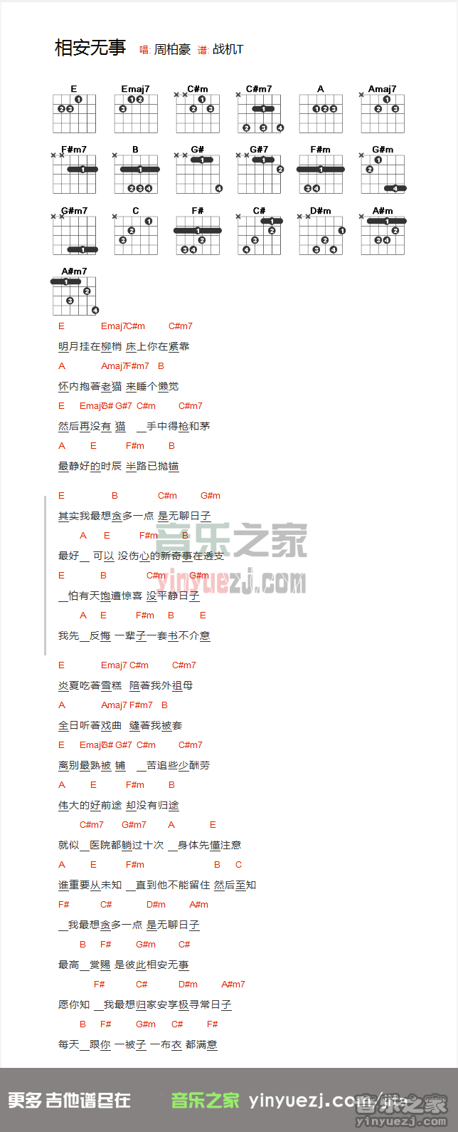 吉他周柏豪《相安无事》吉他谱_吉他弹唱谱