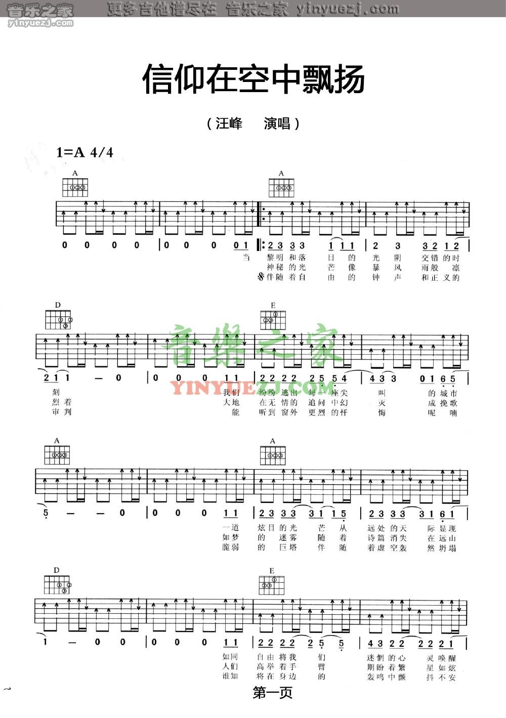 吉他汪峰《信仰在空中飘扬》吉他谱_吉他弹唱谱_YYZJ编配