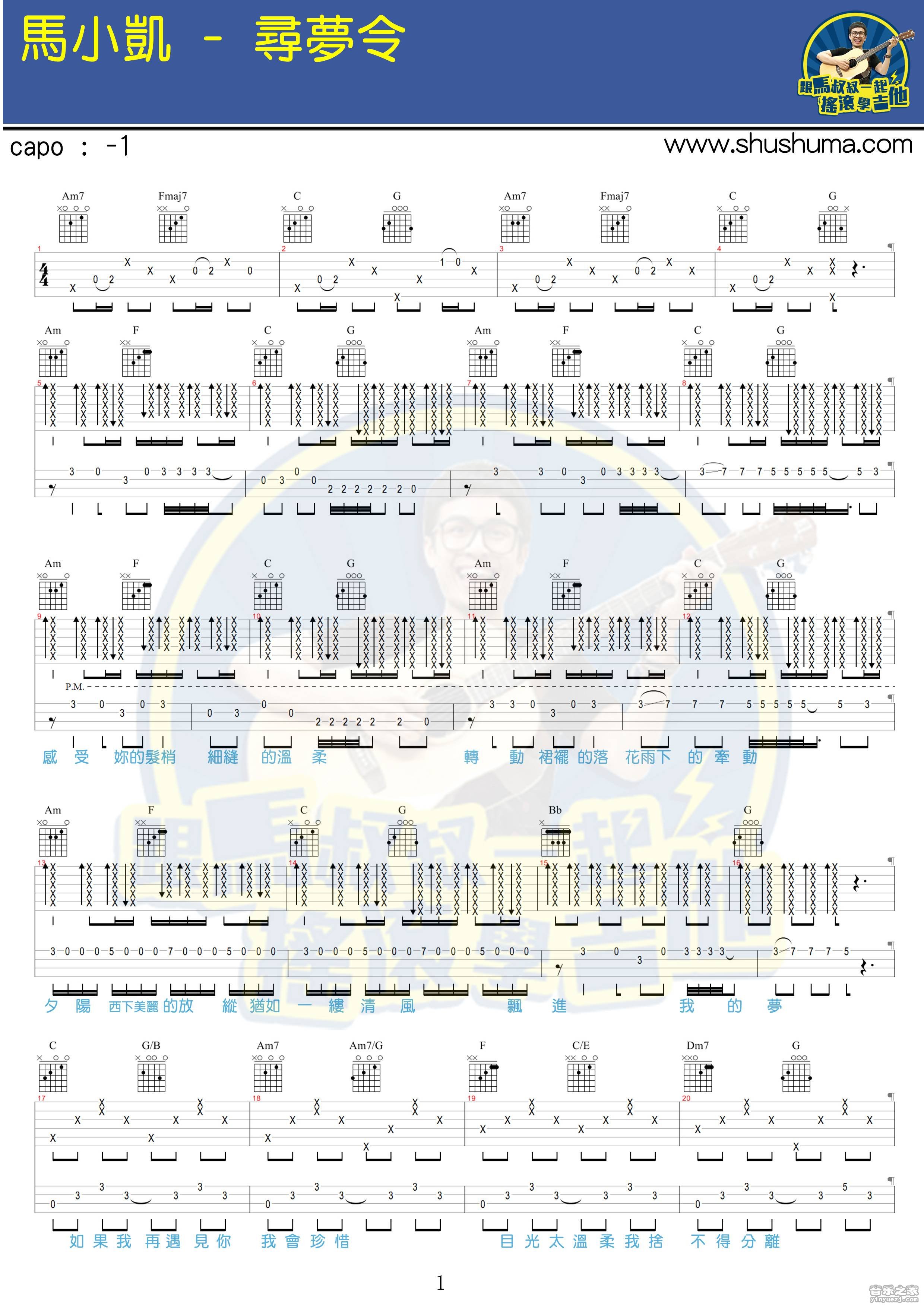 吉他马小凯《寻梦令》吉他谱_吉他弹唱谱_马叔叔编配