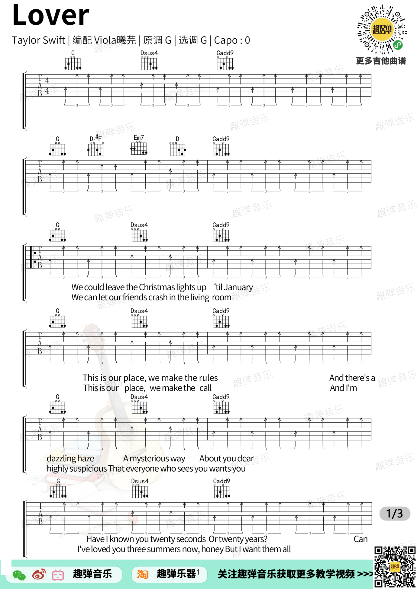 吉他Taylor Swift《Lover》吉他谱_吉他弹唱谱_趣弹音乐编配
