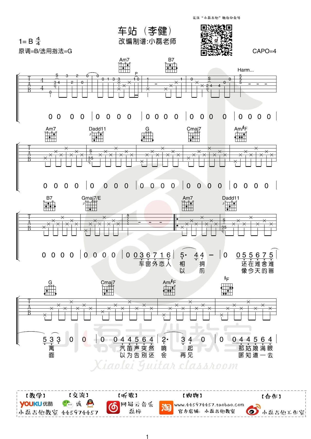 吉他李健《车站》吉他谱_吉他弹唱谱_小磊吉他编配