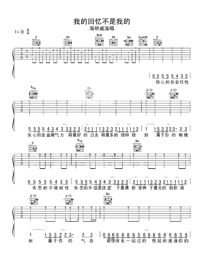 吉他海明威《我的回忆不是我的》吉他谱_吉他弹唱谱
