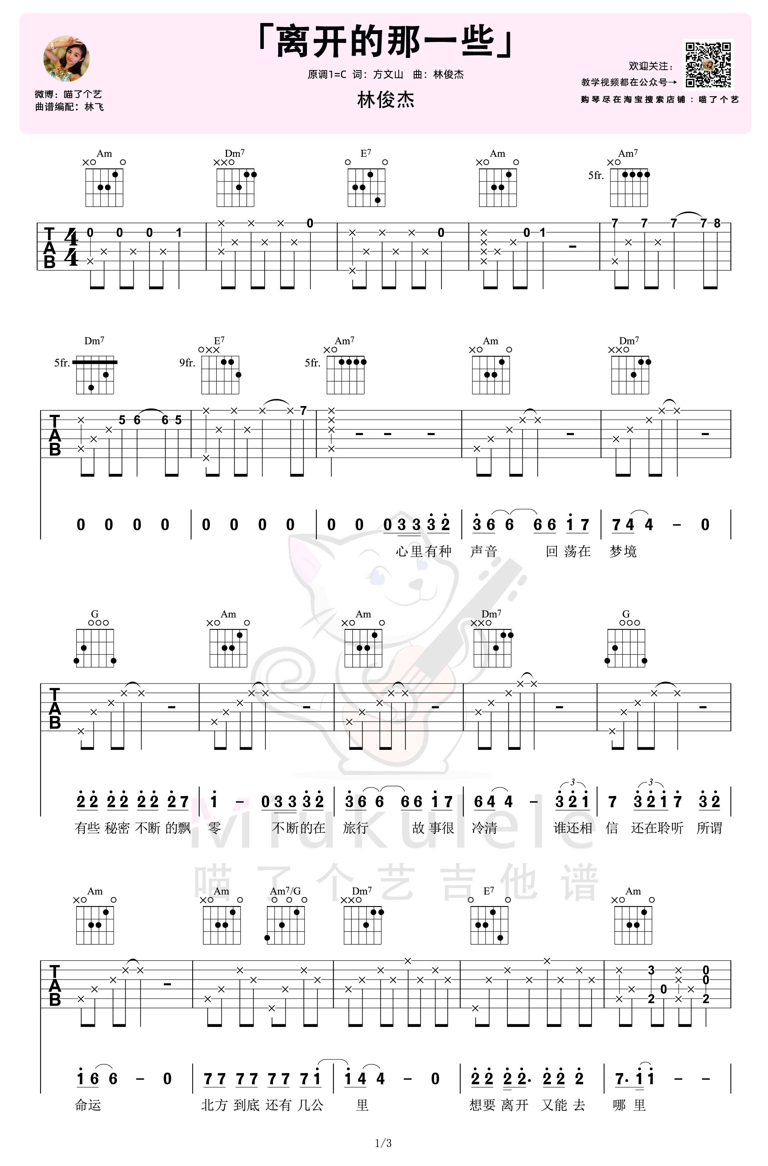 吉他林俊杰《离开的那一些》吉他谱_吉他弹唱谱_喵了个艺编配
