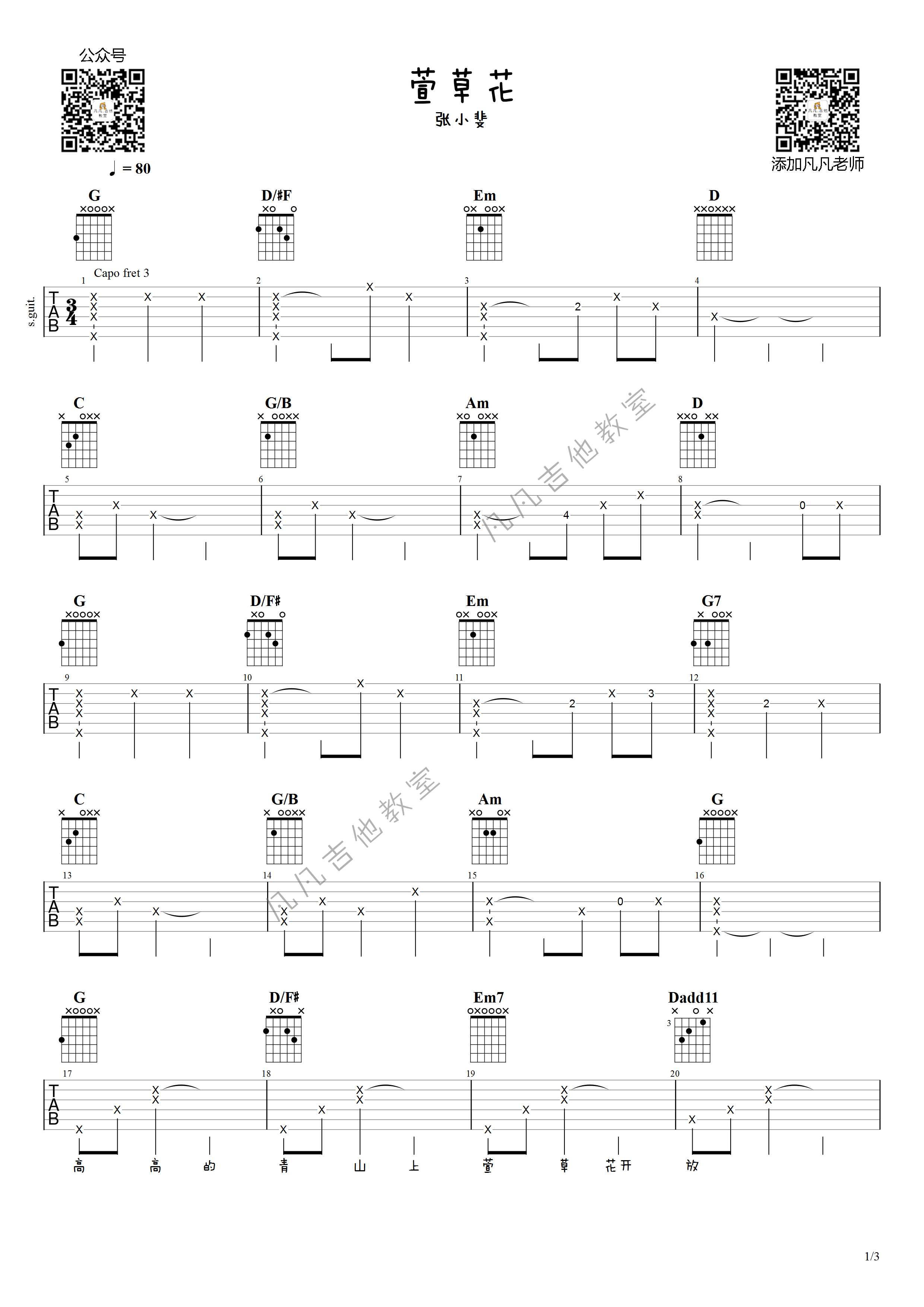 张小斐《萱草花》吉他谱,共有3张高清图谱。...
