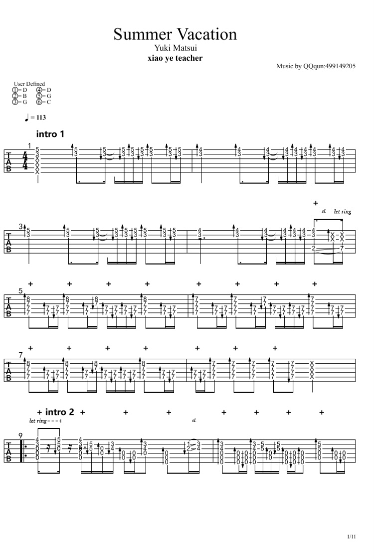 松井佑贵《summervacation》吉他谱,共有11张高清图谱。...