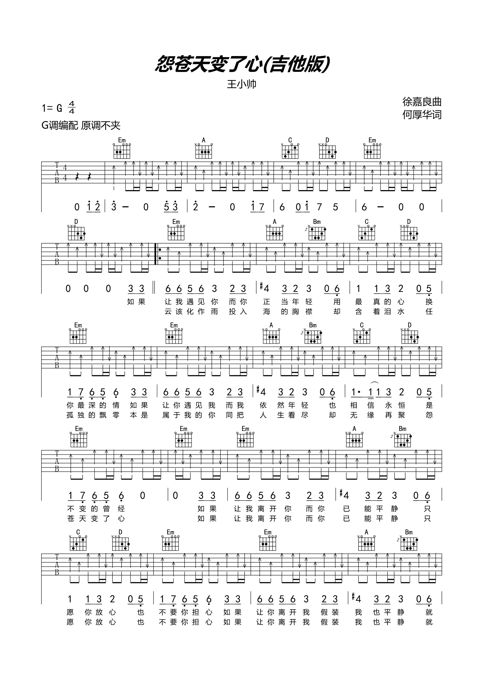 吉他王小帅《苍天变了心》吉他谱_吉他弹唱谱