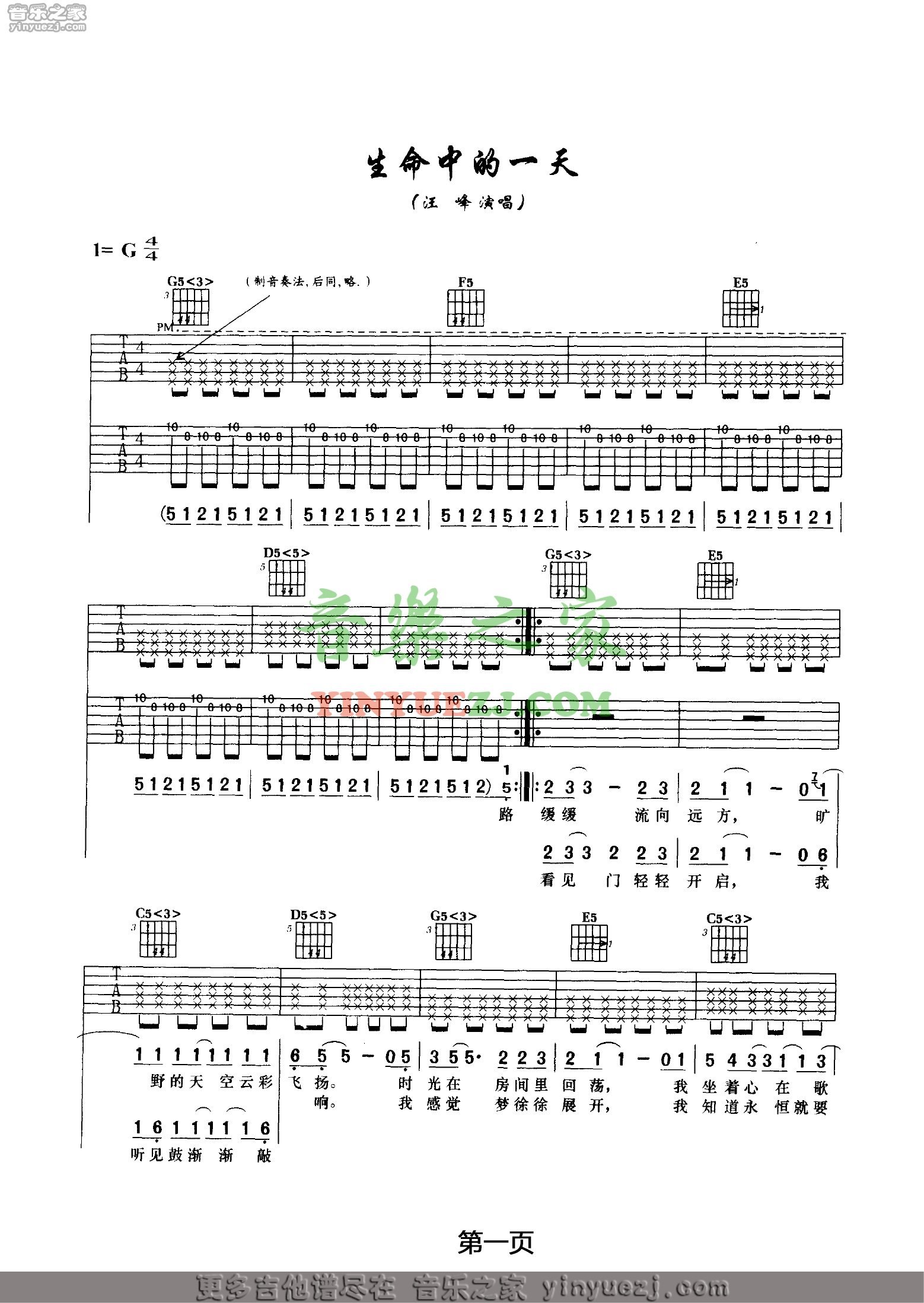 吉他汪峰《生命中的一天》吉他谱_吉他弹唱谱_YYZJ编配