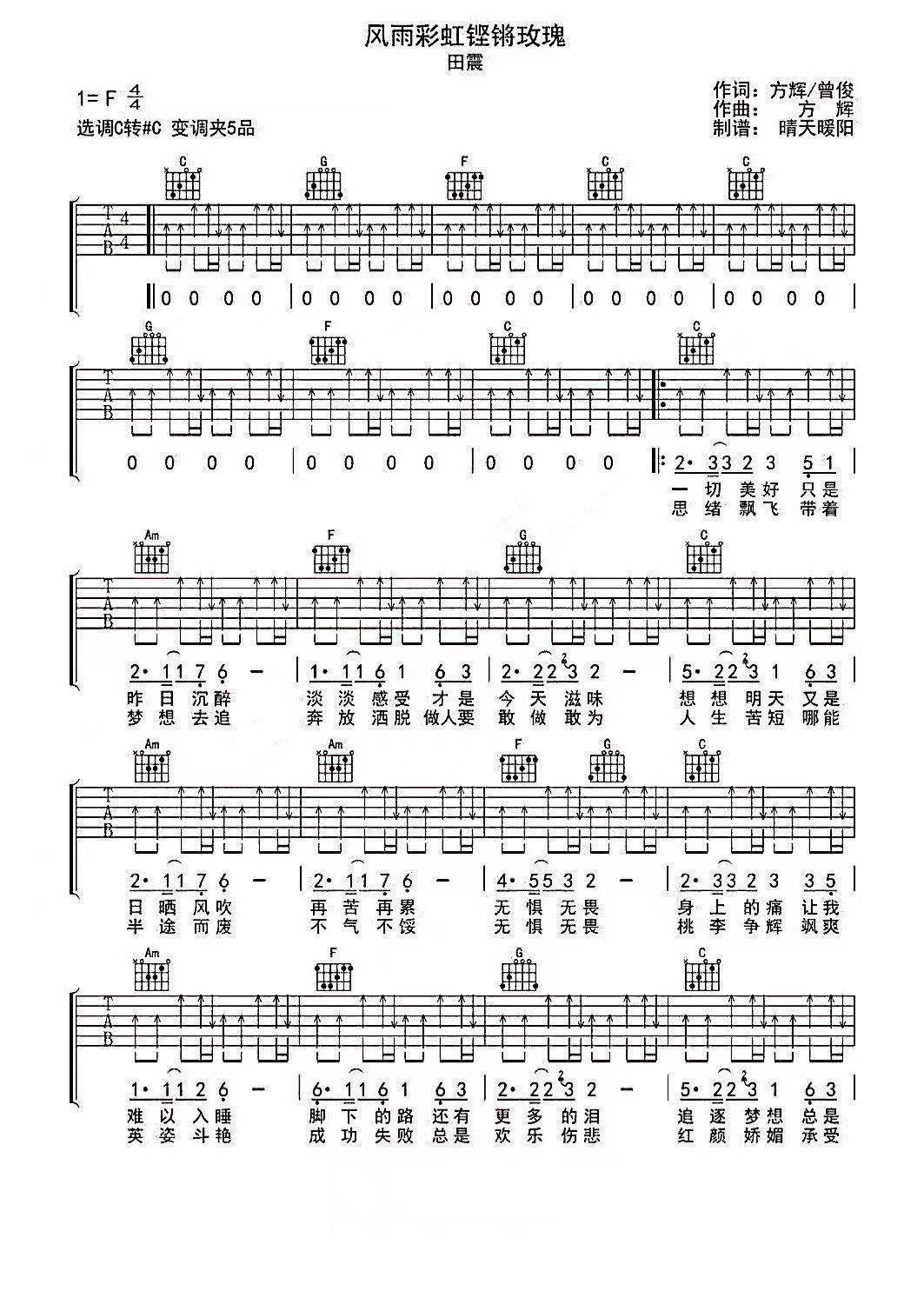 吉他田震《风雨彩虹铿锵玫瑰》吉他谱_吉他弹唱谱