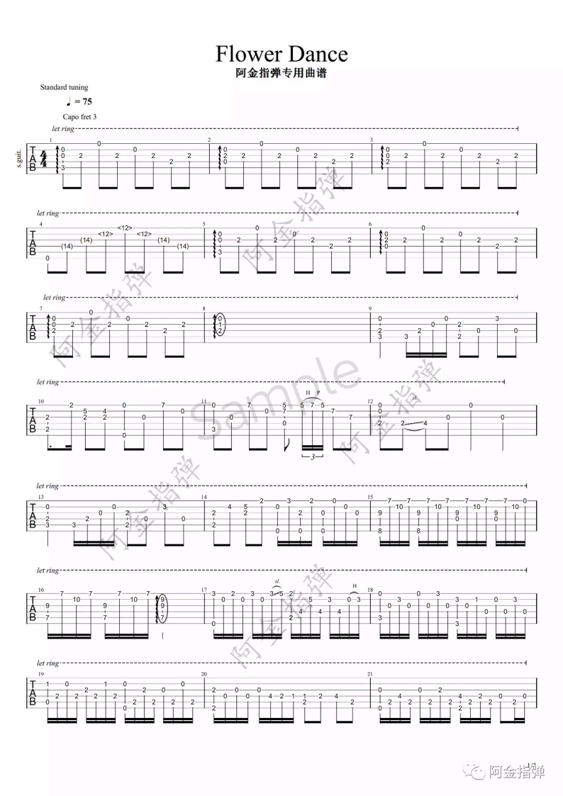 吉他DJ《flower dance》吉他谱_吉他指弹六线谱_阿金指弹编配