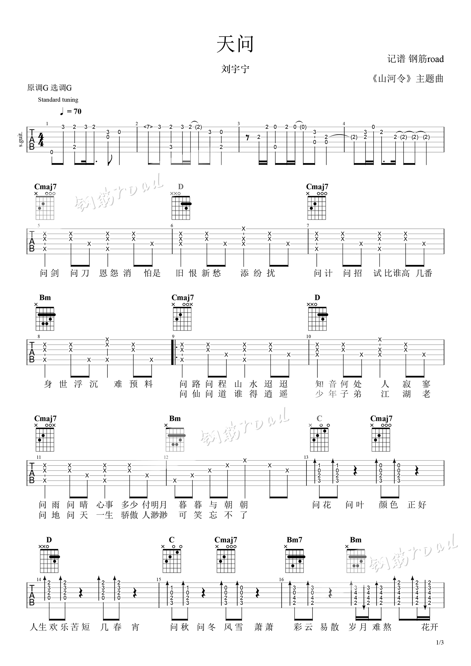 吉他刘宇宁《天问》吉他谱_吉他弹唱谱_钢筋road编配