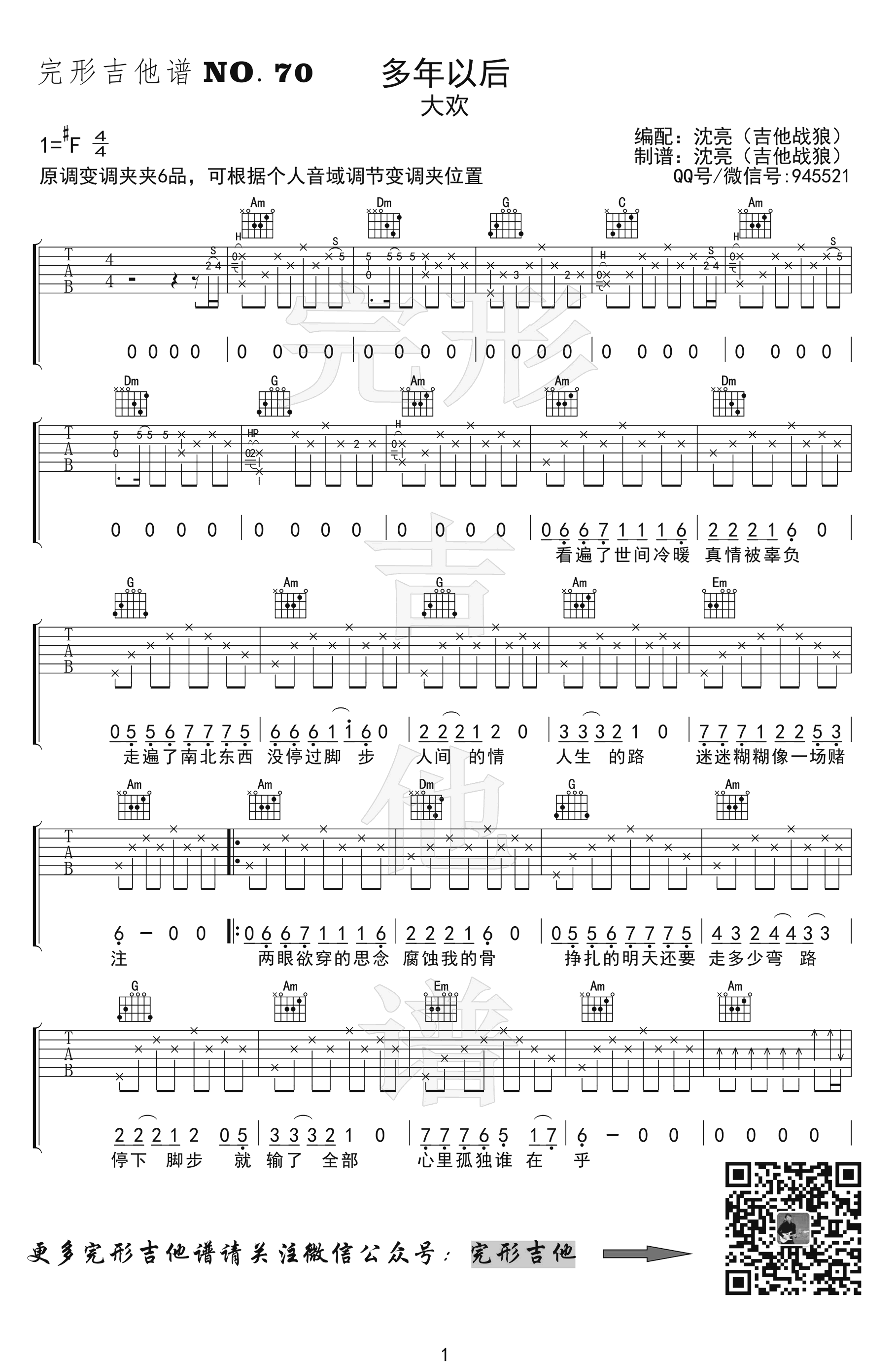 吉他大欢《多年以后》吉他谱_吉他弹唱谱_完形吉他编配