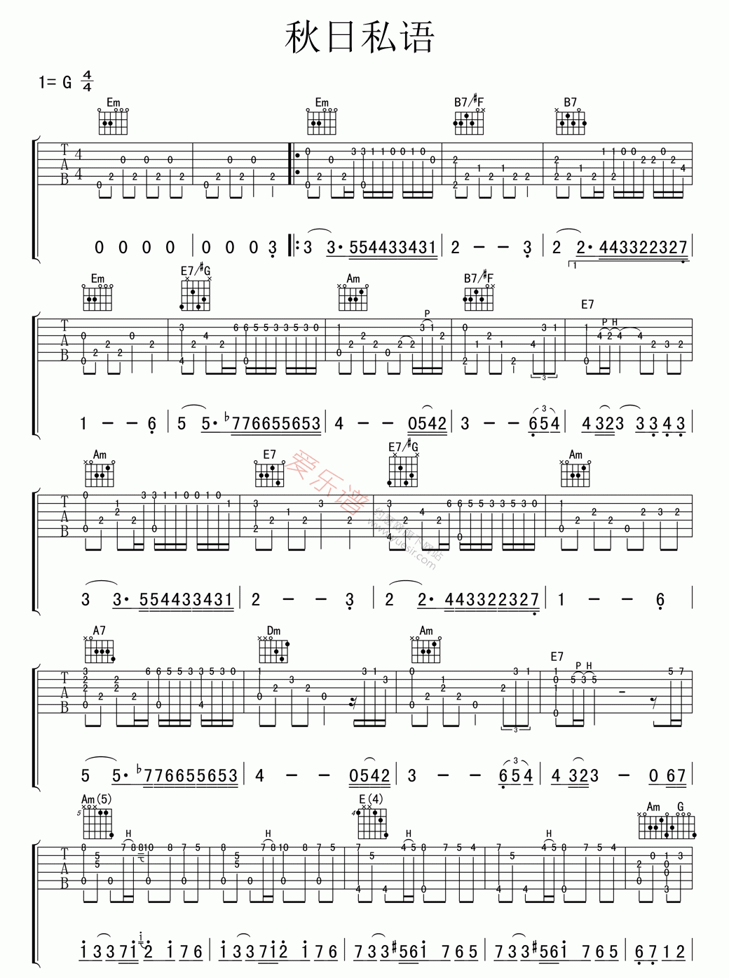 理查德克莱德曼《秋日私语》吉他谱_G调吉他独奏谱...