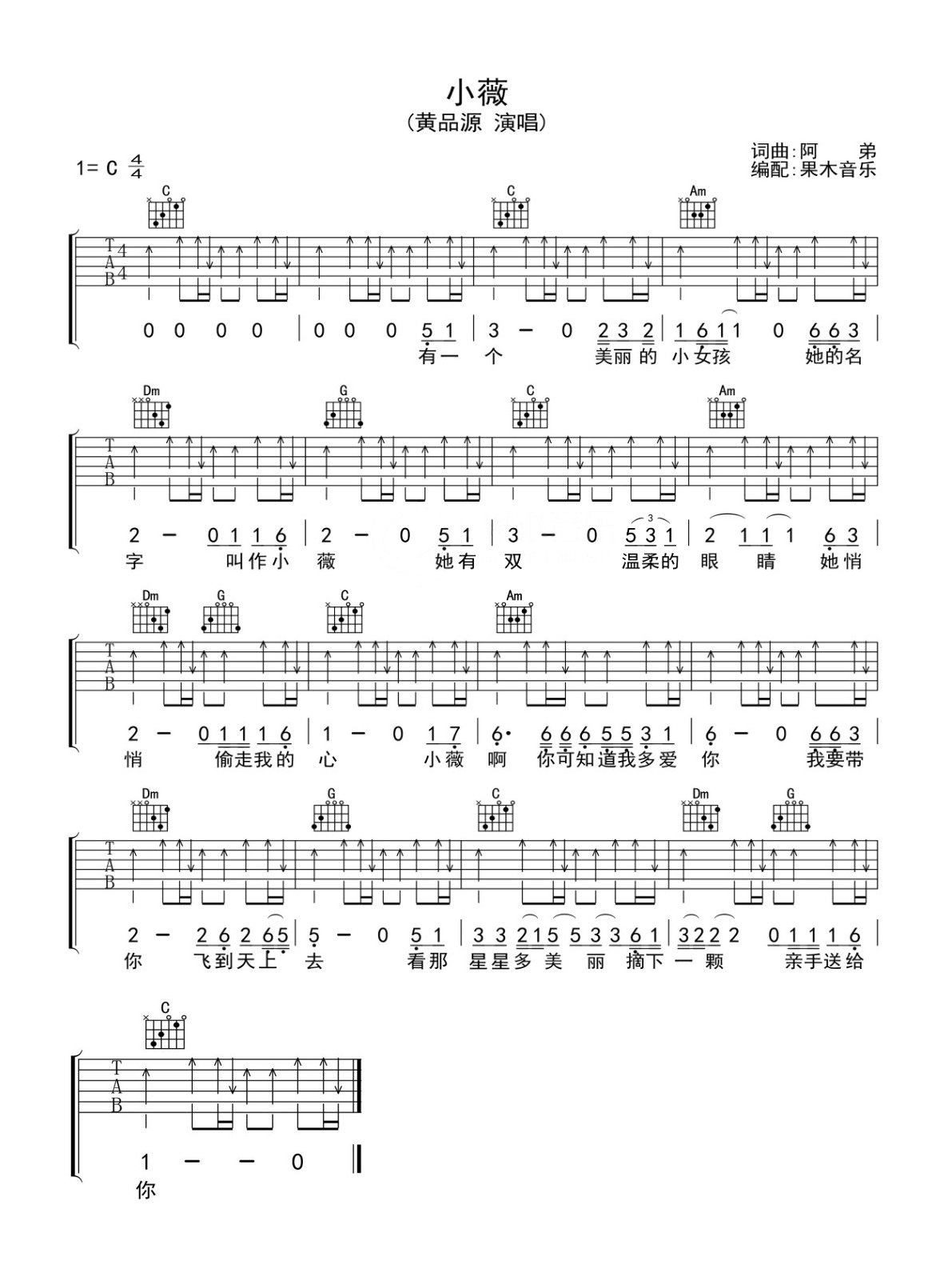 黄品源《小薇》吉他谱,共有1张高清图谱,免翻页排版设计。...