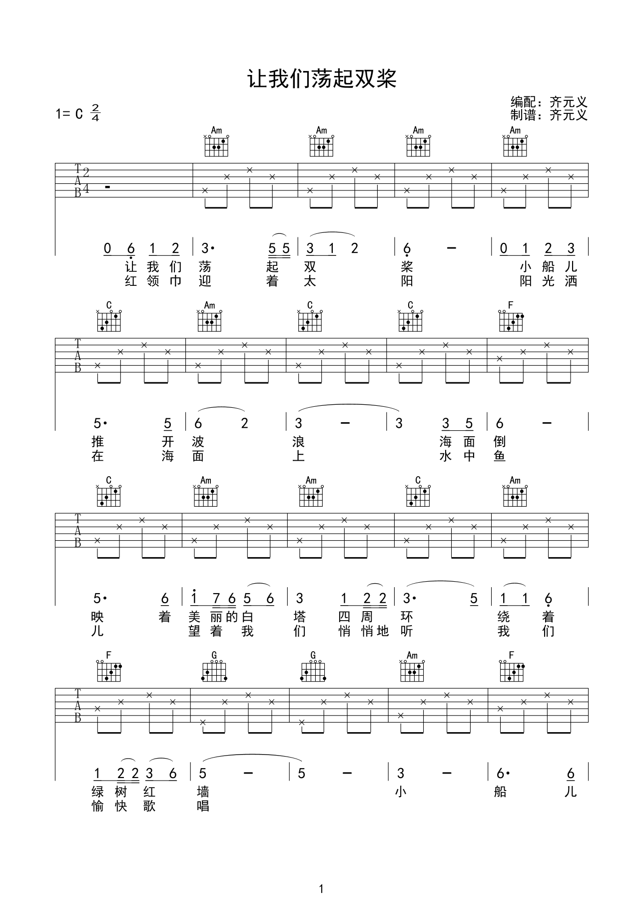 吉他儿歌《让我们荡起双桨》吉他谱_吉他弹唱谱_齐元义编配