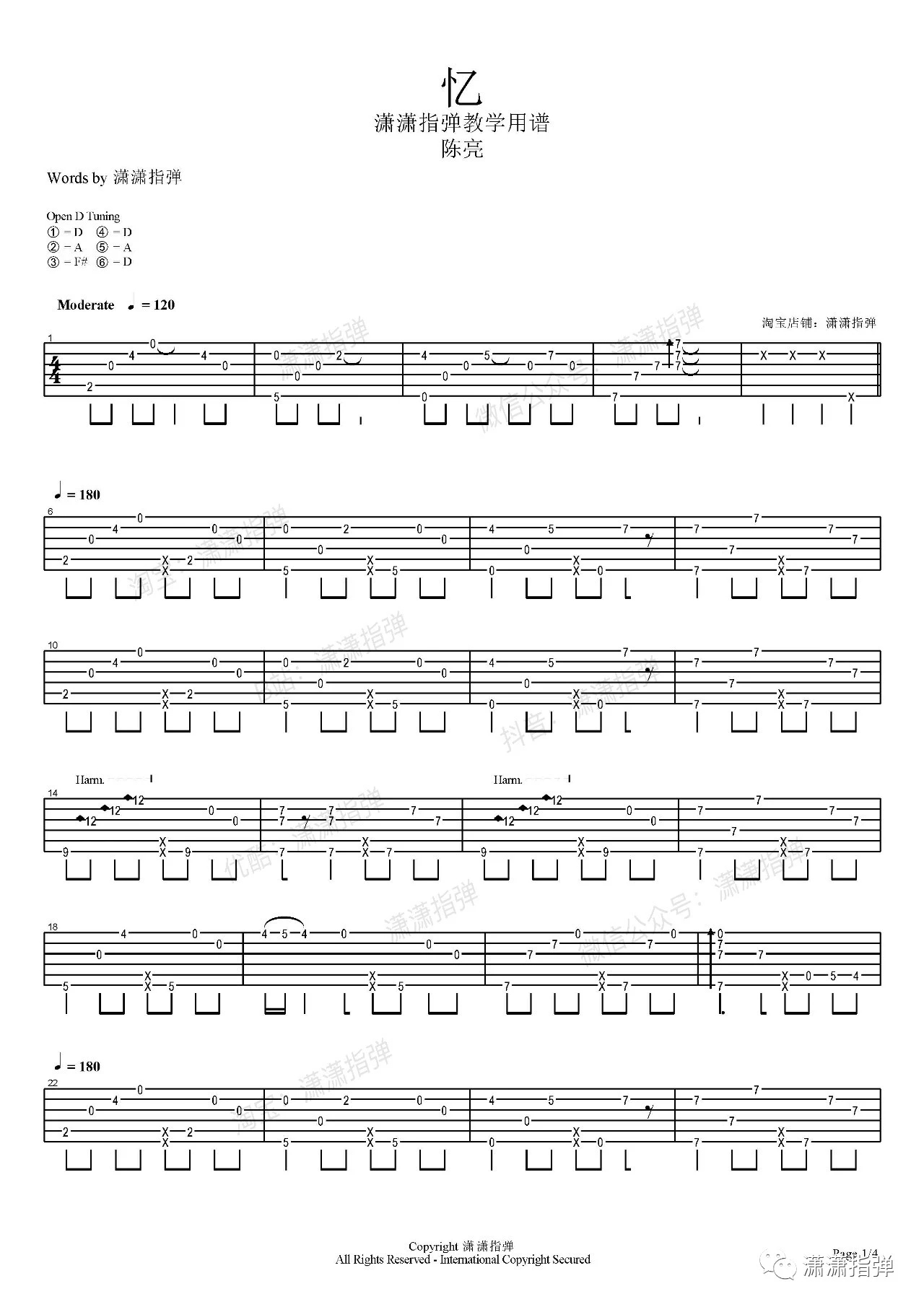 陈亮《忆》吉他谱,潇潇指弹编配出品,共有4张高清图谱。...