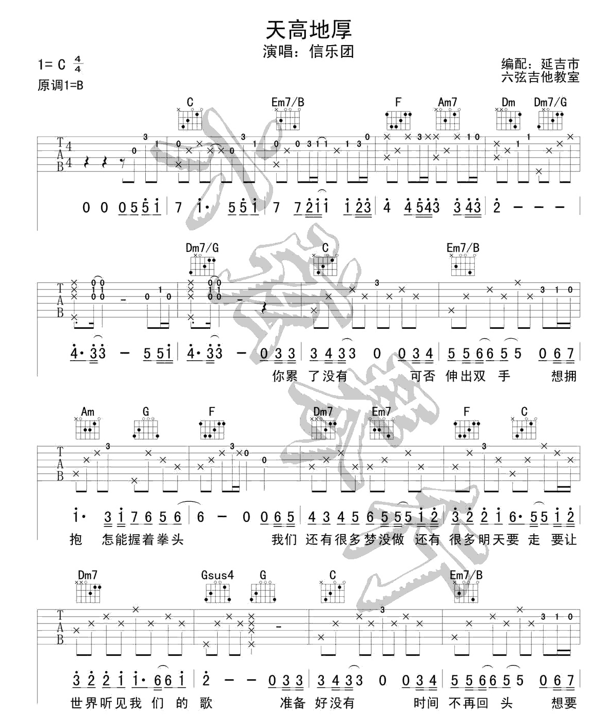 吉他信乐团《天高地厚》吉他谱_吉他弹唱谱_延吉市编配