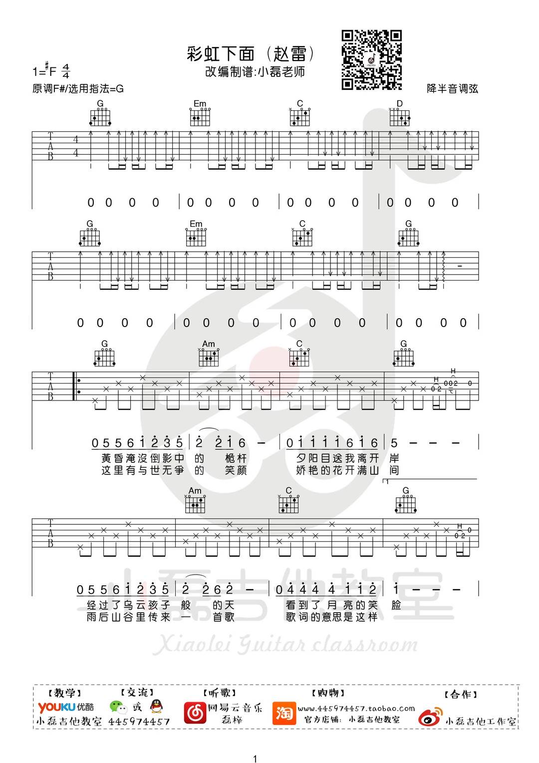 吉他赵雷《彩虹下面》吉他谱_吉他弹唱谱_小磊吉他编配