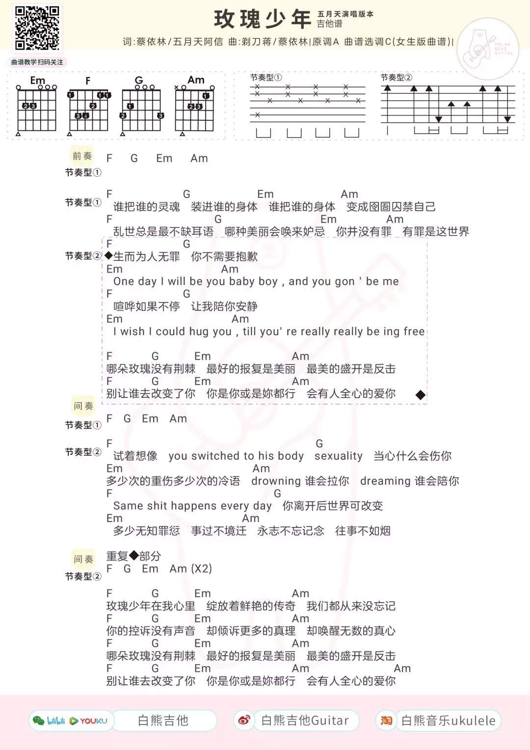 吉他五月天/蔡依林《玫瑰少年》吉他谱_吉他弹唱谱
