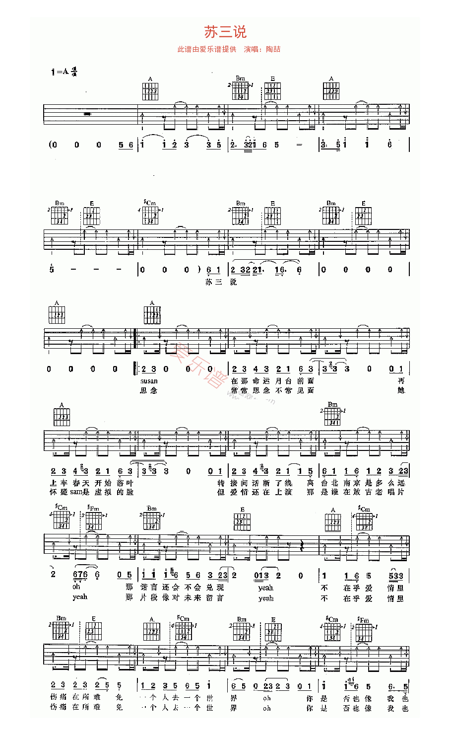 吉他陶喆《苏三说》吉他谱_吉他弹唱谱
