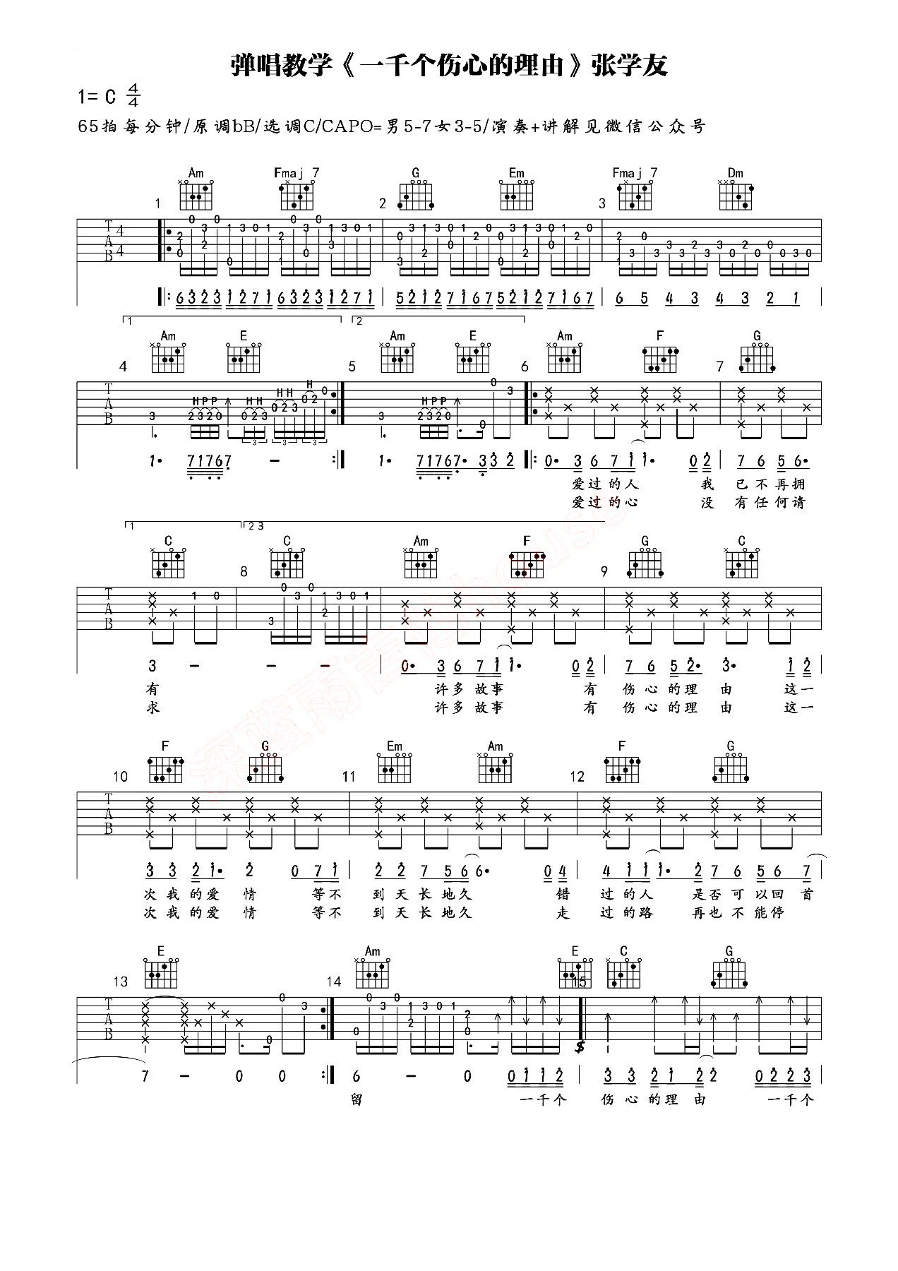 吉他张学友《一千个伤心的理由》吉他谱_吉他弹唱谱_深蓝雨吉他编配