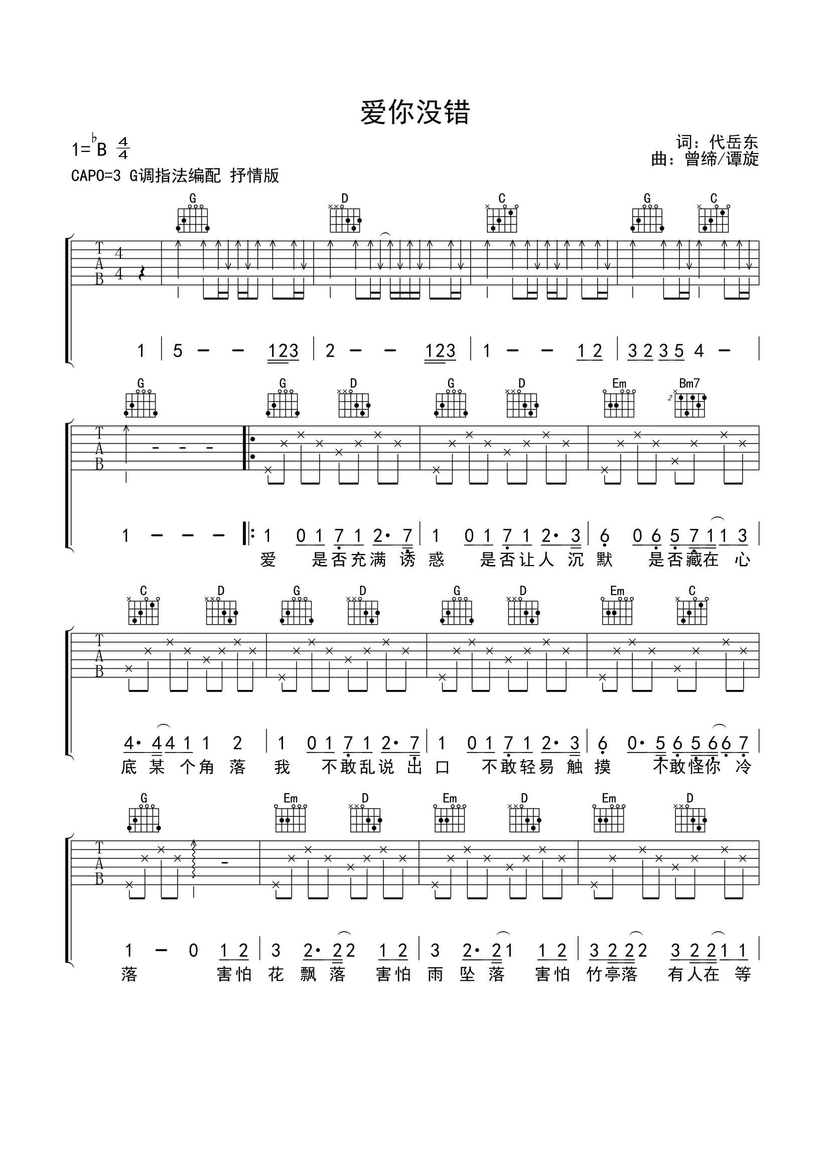 张信哲《爱你没错》吉他谱,共有2张高清图谱,免翻页排版设计。...