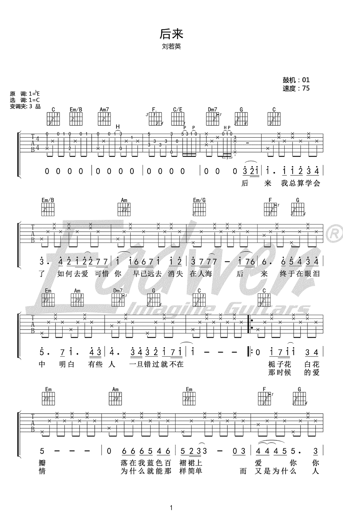 吉他刘若英《后来》吉他谱_吉他弹唱谱_爱德文吉他编配