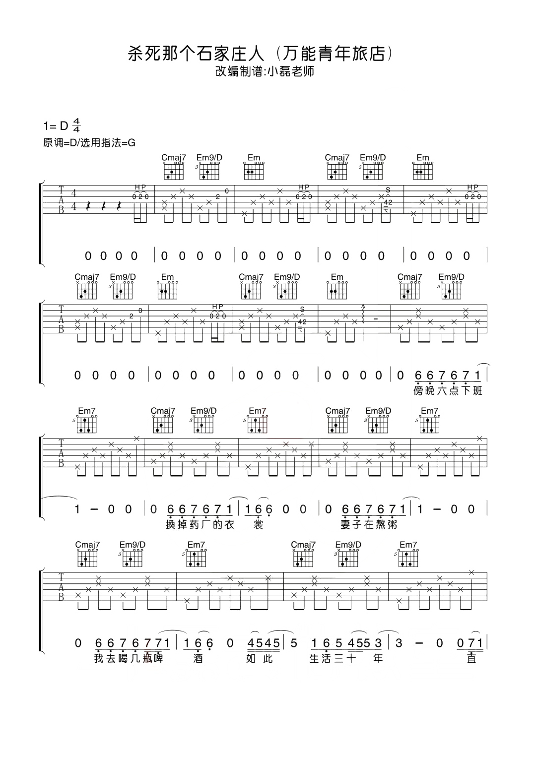 吉他万能青年旅店《杀死那个石家庄人》吉他谱_吉他弹唱谱_小磊吉他编配