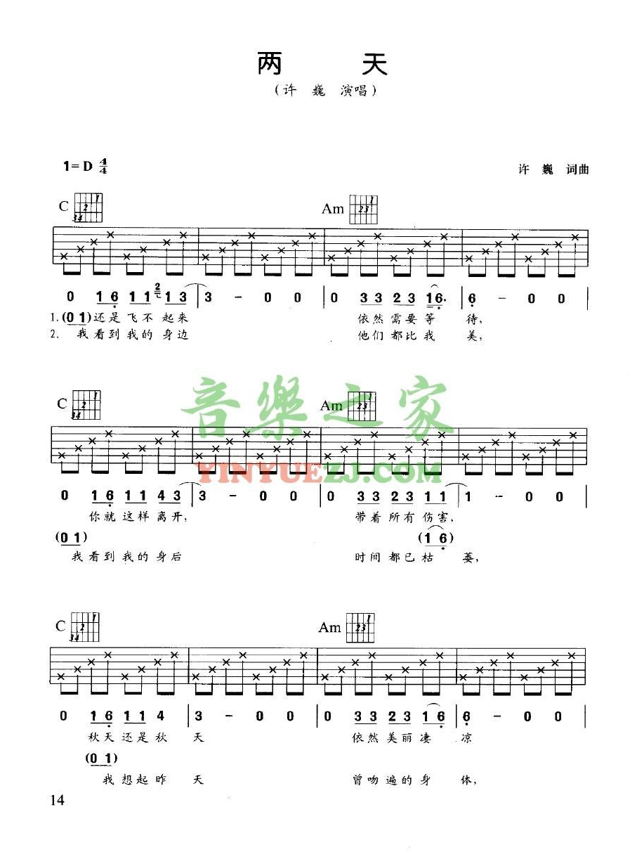 吉他许巍《两天》吉他谱_吉他弹唱谱