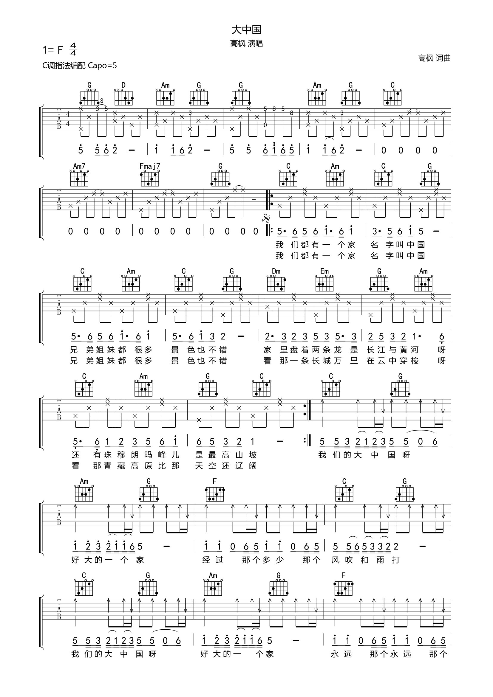 吉他高枫《大中国》吉他谱_吉他弹唱谱