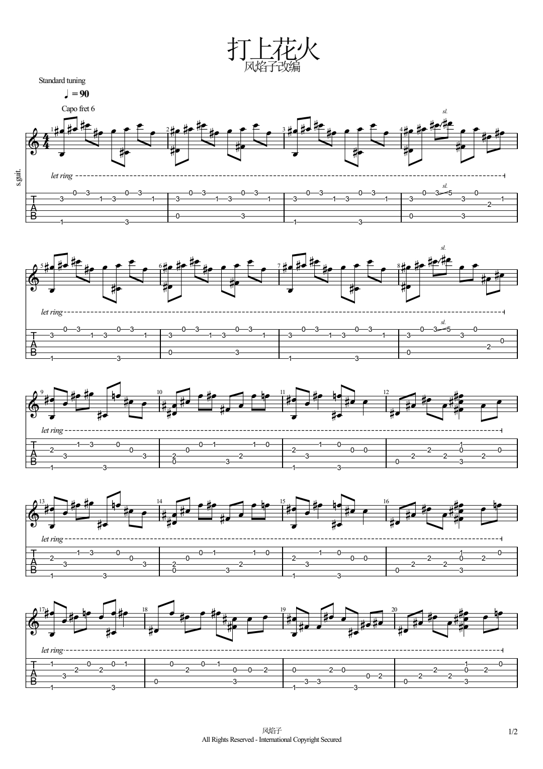 吉他米津玄师《打上花火》吉他谱_吉他指弹六线谱_风焰子编配