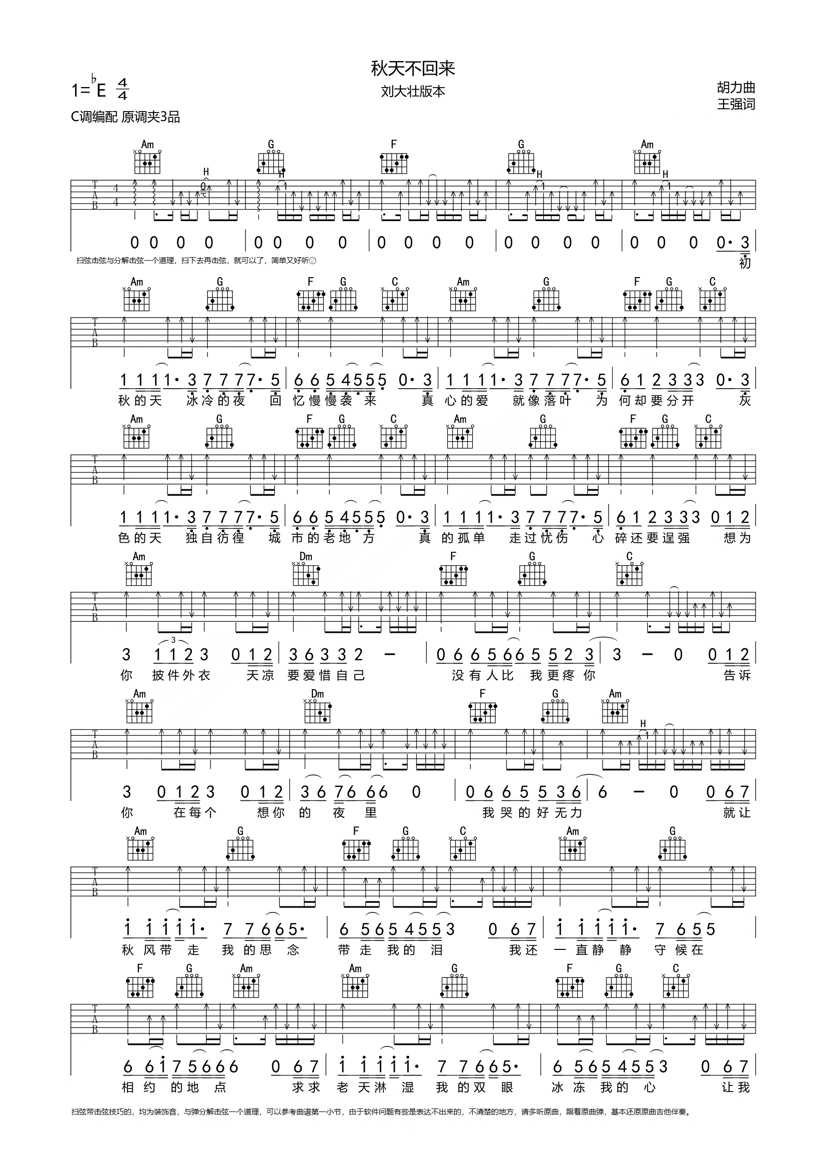 吉他刘大壮《秋天不回来》吉他谱_吉他弹唱谱