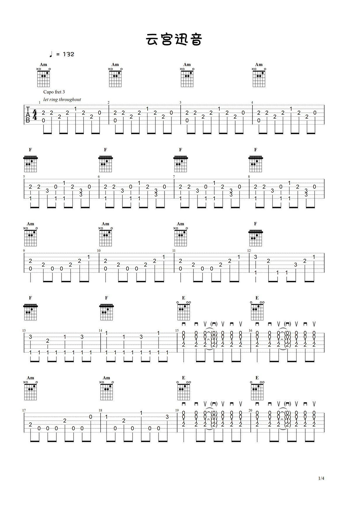 央视经典电视剧《西游记》序曲,许镜清的代表作品。云宫迅音吉他独奏谱,Capo夹三品,家喻户晓的一曲旋律,《云宫迅音》是贯穿于整个童年影视回忆的BGM,音乐为人们活灵活现了孙悟空腾云驾雾的飒爽英姿、唐僧坚忍不拔的取经精神以及嫦娥云中漫舞的经典场景。...