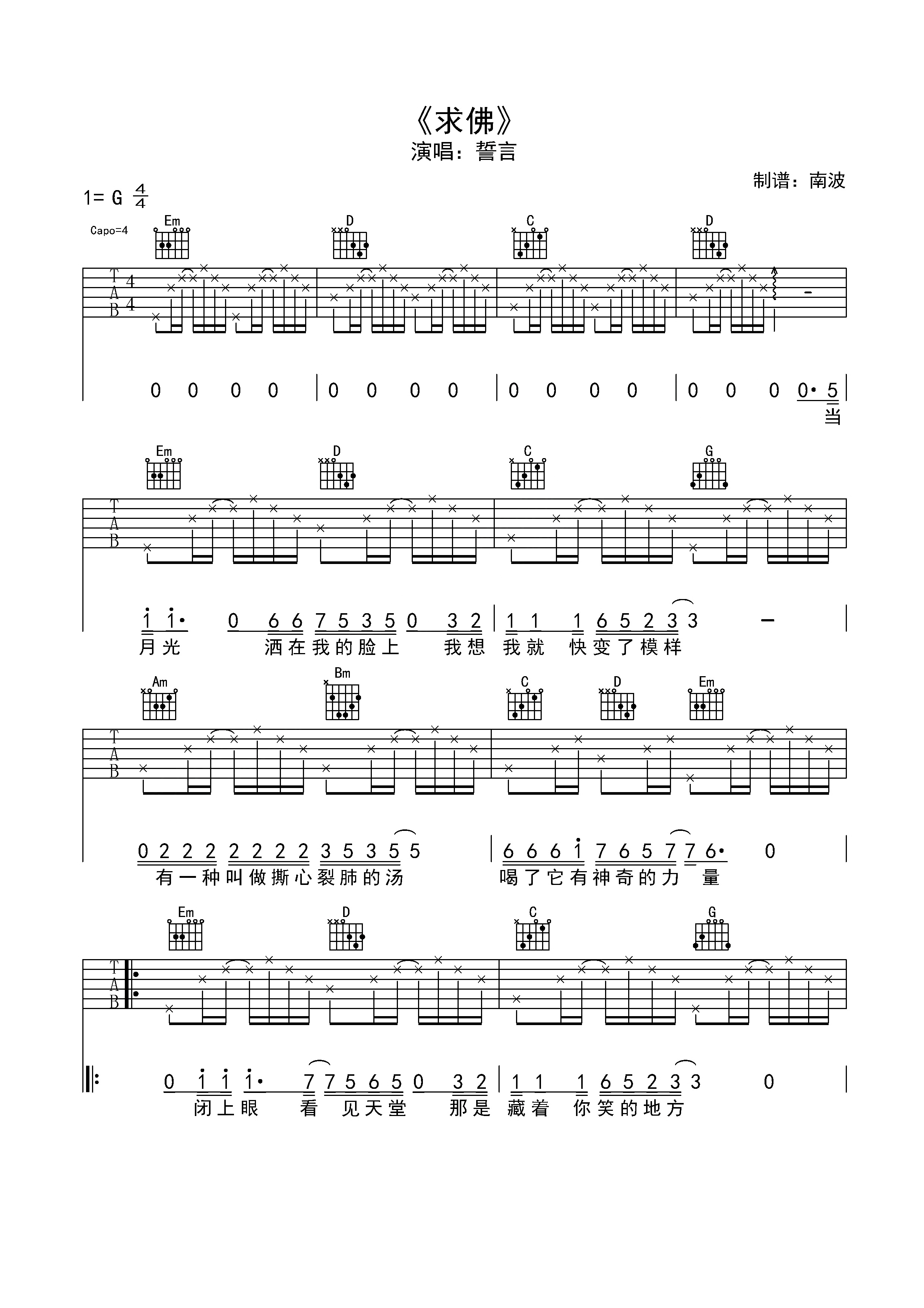 吉他誓言《求佛》吉他谱_吉他弹唱谱_南波编配