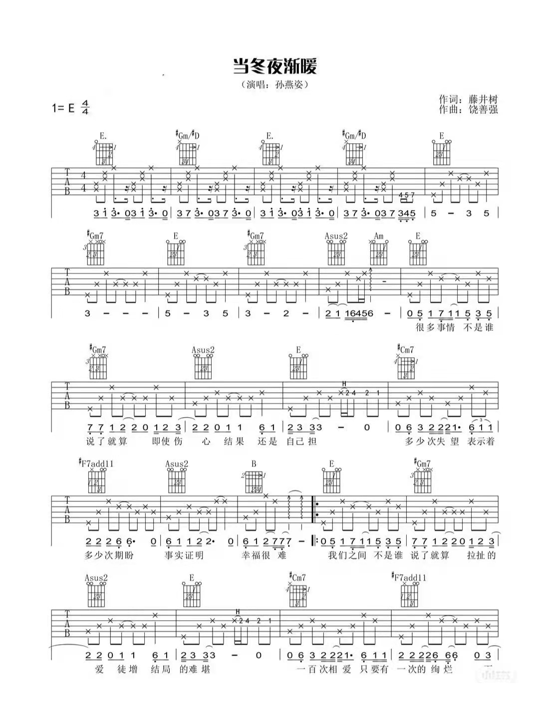 吉他孙燕姿《当冬夜渐暖》吉他谱_吉他弹唱谱