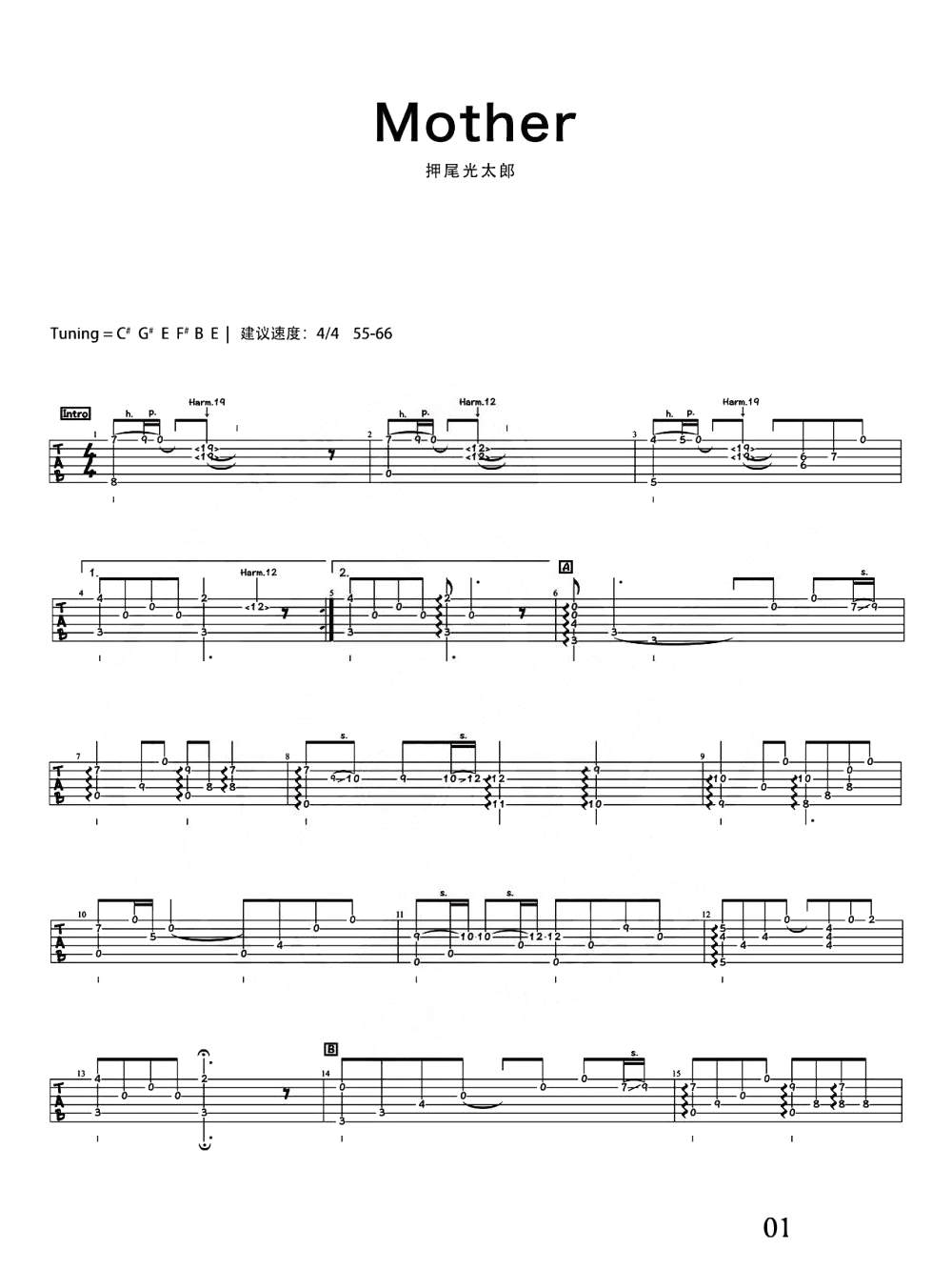 押尾光太郎《Mother》吉他谱,元子编配出品,共有6张高清图谱。...
