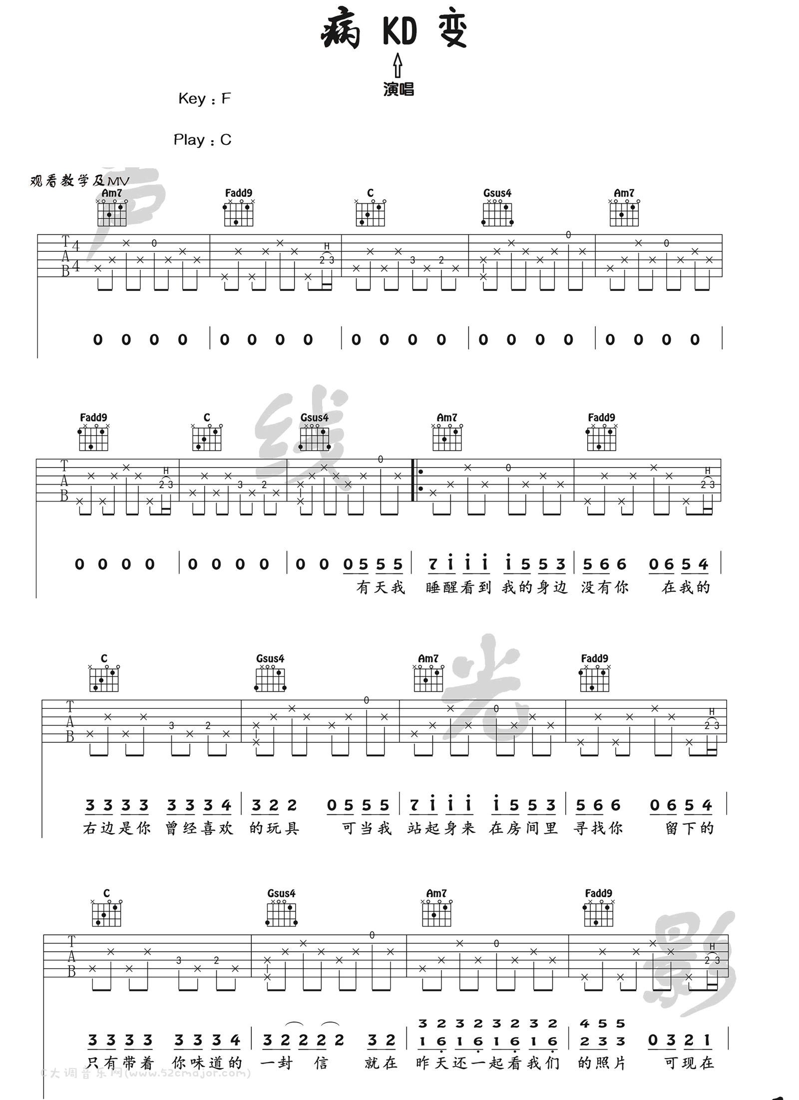 吉他《病变》吉他谱_吉他弹唱谱_声线光影编配