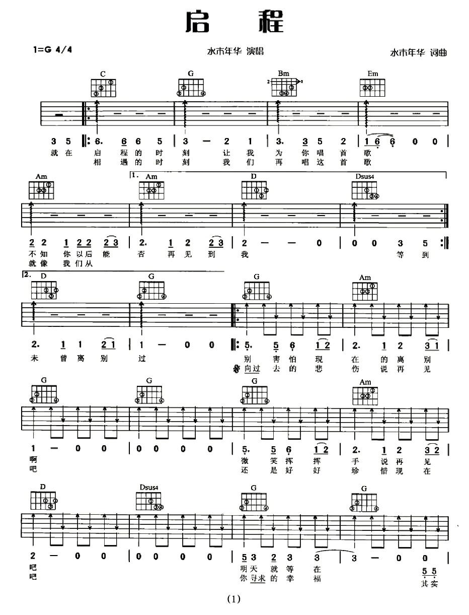 吉他水木年华《启程》吉他谱_吉他弹唱谱