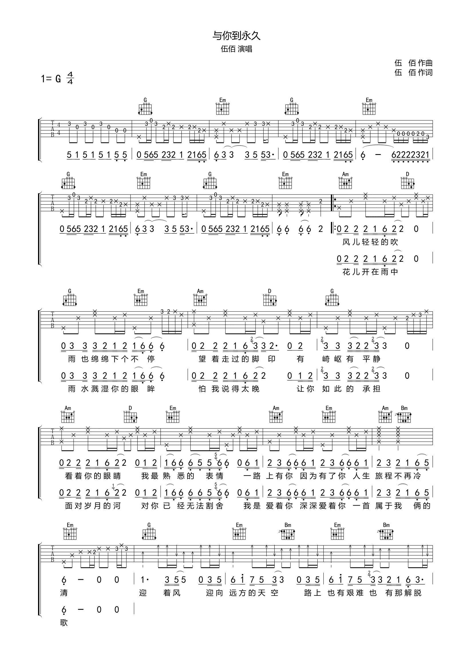 吉他伍佰《与你到永久》吉他谱_吉他弹唱谱