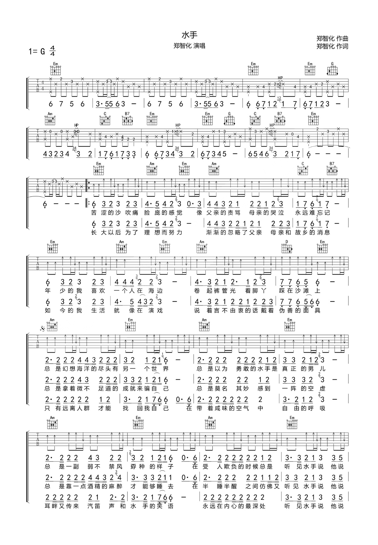 吉他郑智化《水手》吉他谱_吉他弹唱谱