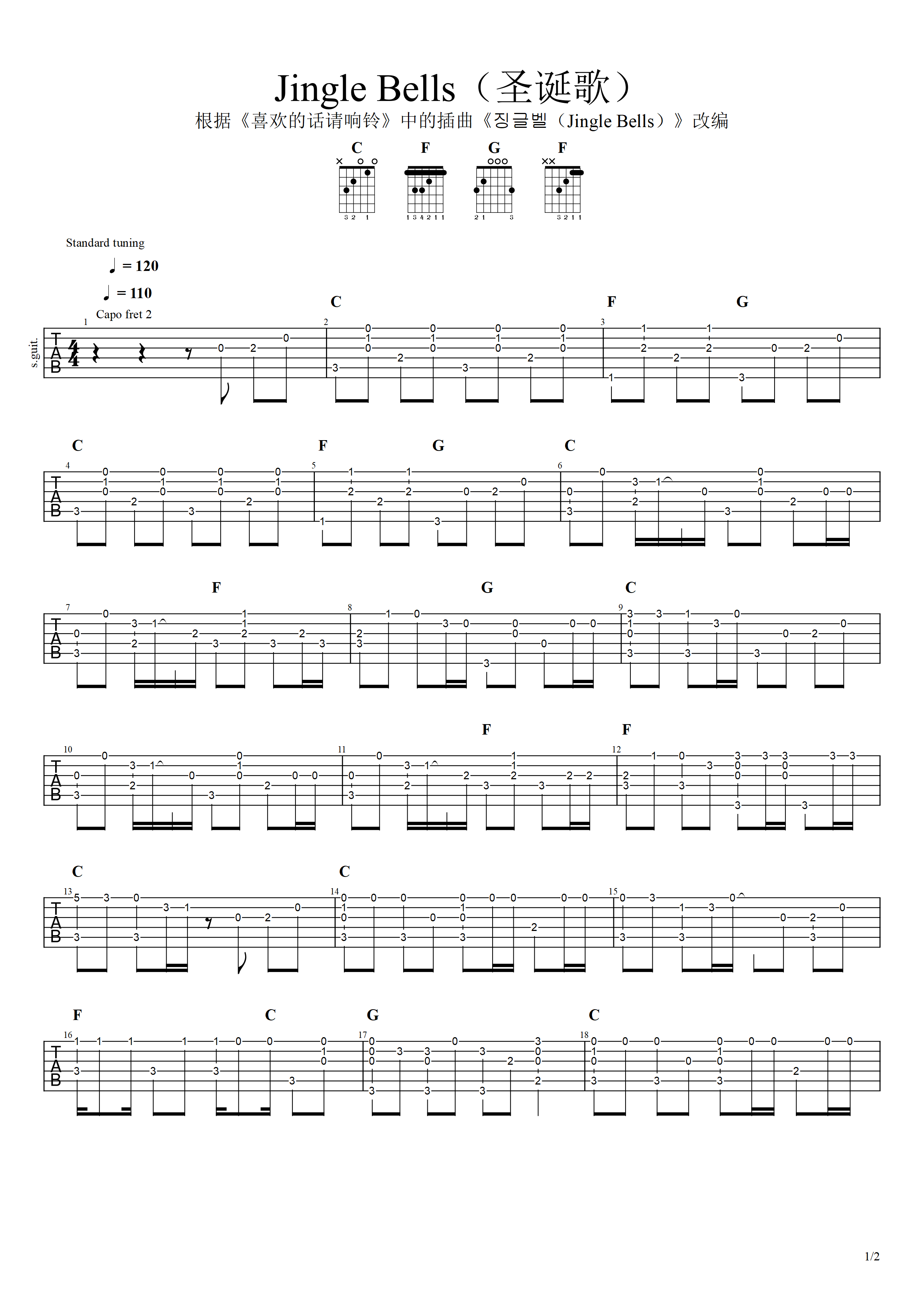 吉他圣诞歌《Jingle Bells》吉他谱_吉他指弹六线谱