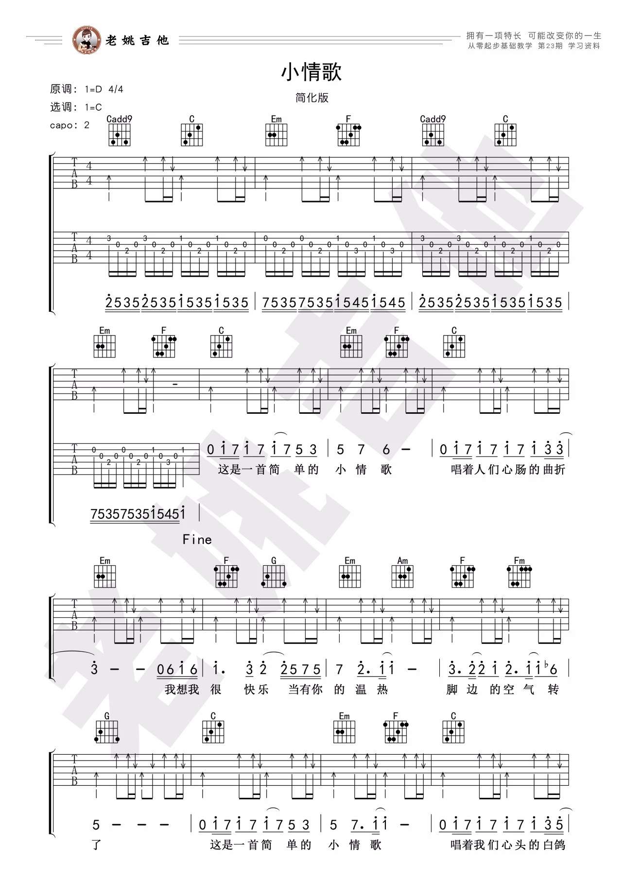 吉他苏打绿《小情歌》吉他谱_吉他弹唱谱_老姚吉他编配