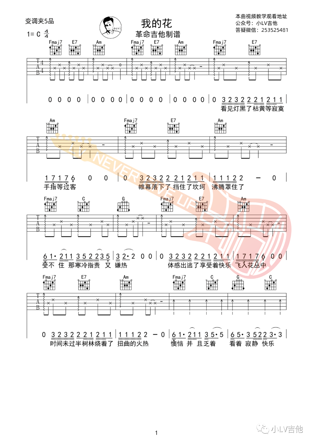 吉他要不要买菜《我的花》吉他谱_吉他弹唱谱_革命吉他编配