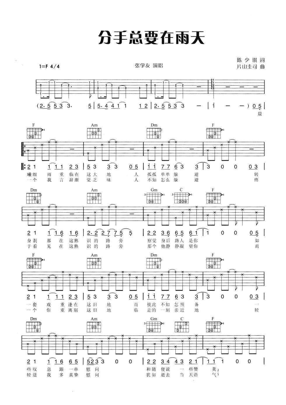 吉他张学友《分手总要在雨天》吉他谱_吉他弹唱谱
