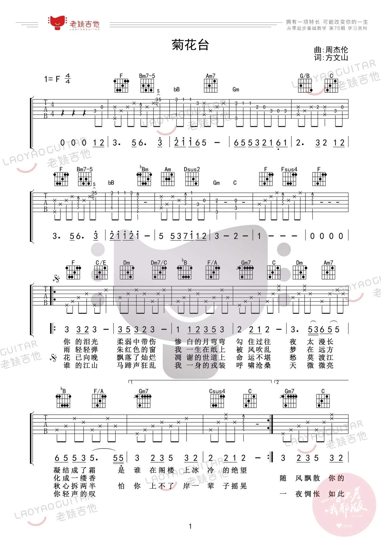 吉他周杰伦《菊花台》吉他谱_吉他弹唱谱_老姚吉他编配