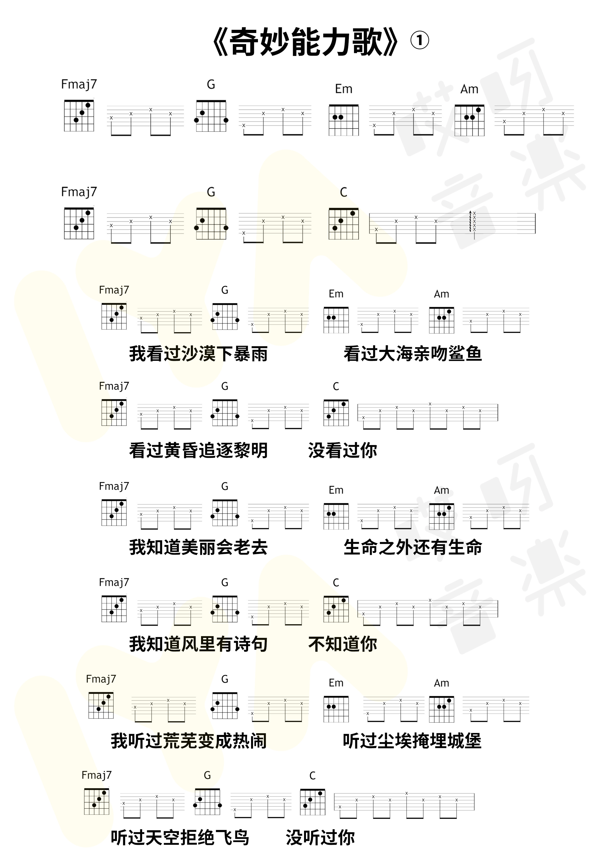 吉他陈粒《奇妙能力歌》吉他谱_吉他弹唱谱