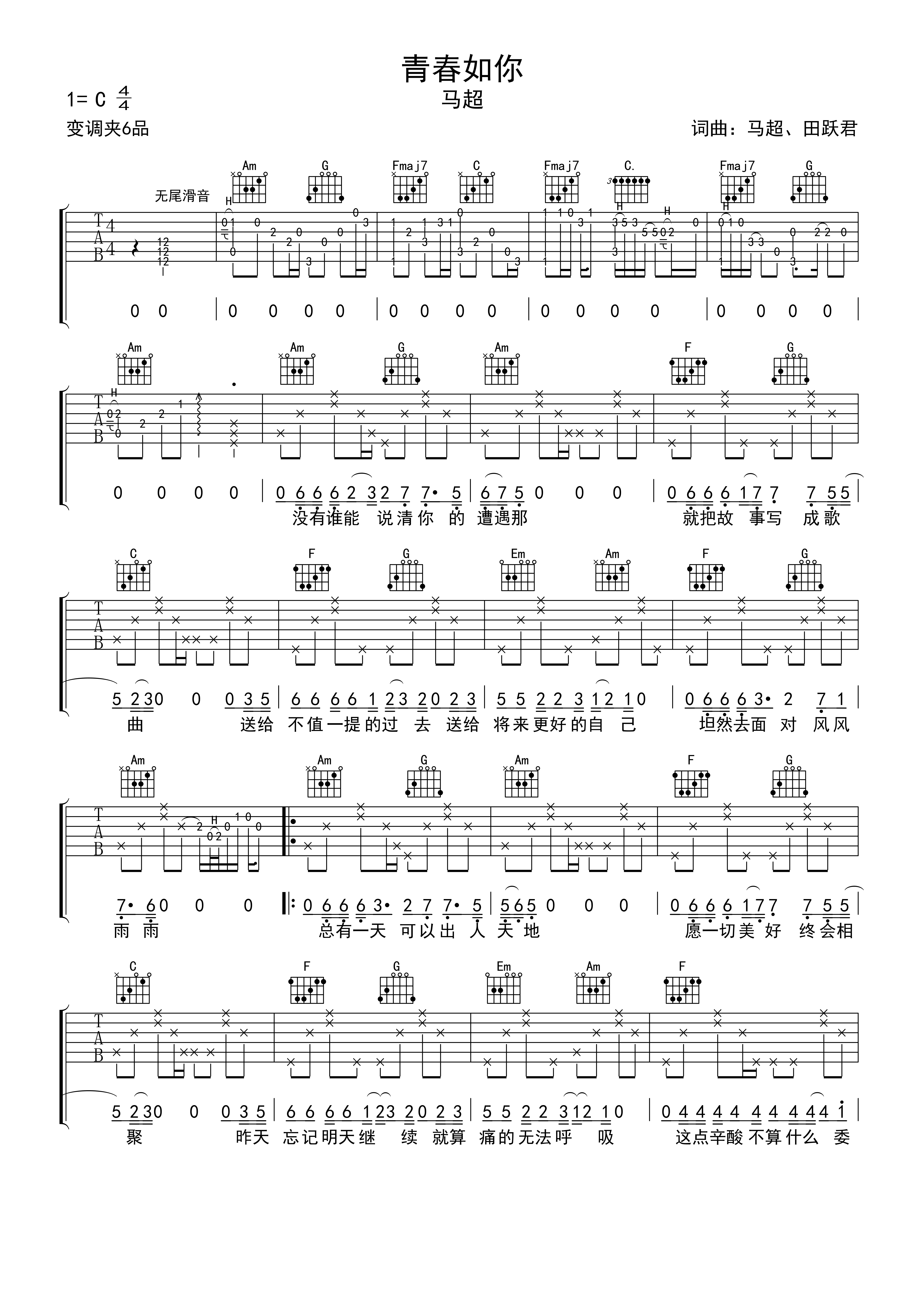 吉他马超《青春如你》吉他谱_吉他弹唱谱