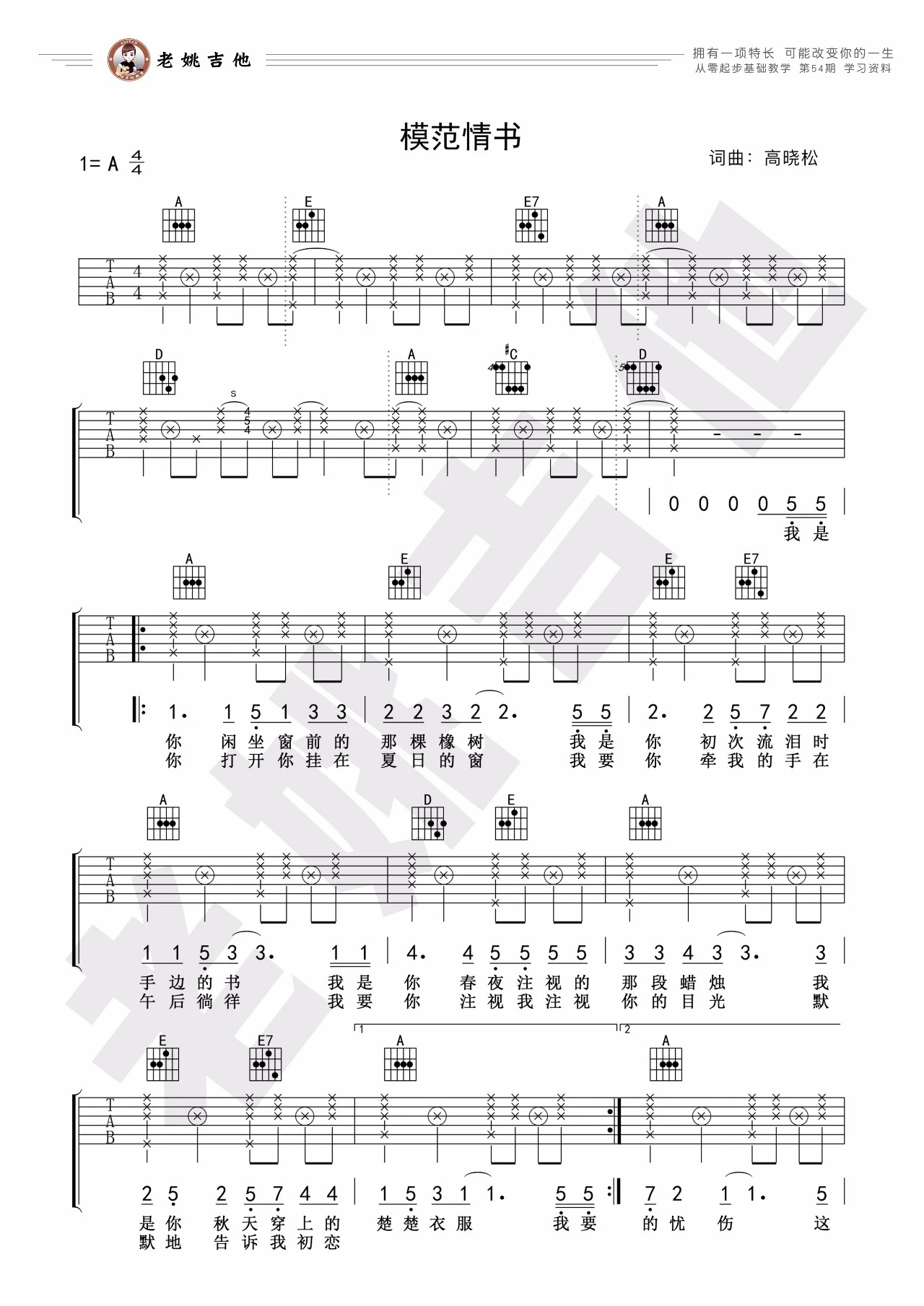 吉他老狼《模范情书》吉他谱_吉他弹唱谱_老姚吉他编配